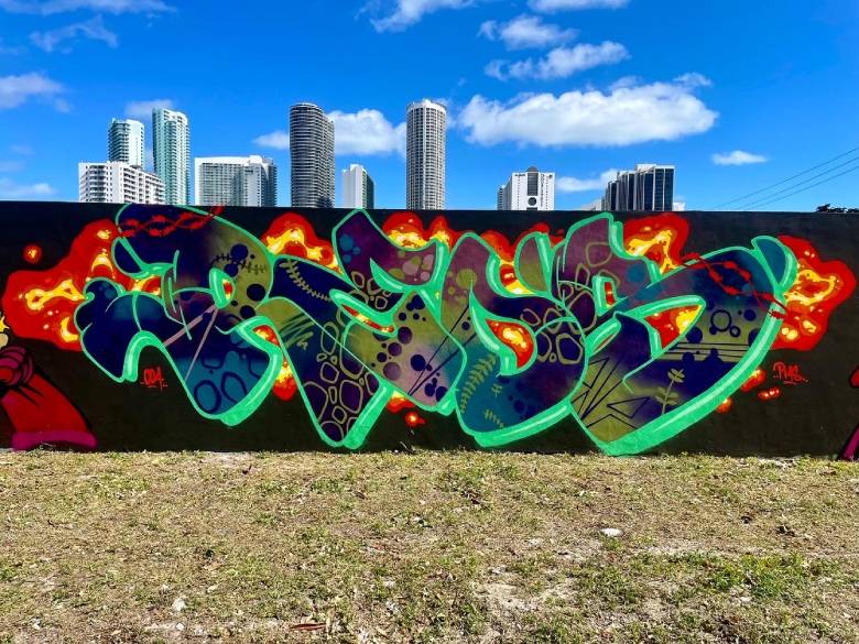 Reds is a person with a strong character, like her letters. She started painting in 2007, inspired by the tags and pieces she saw around Hialeah, and if you have been to Miami you will have paid witness to her pieces and bombings. They will surely impress you, and as the song says, “When she opens her mouth, she spits gasoline!”